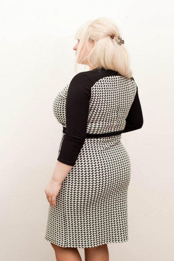 - Элегантное платье приталенного силуэта с рукавом 3/4 и втачным поясом. Вырез на "запах", юбка на "запах". Размер: 42 - 52. 97% вискоза, 3% эластан. Цвета: чёрный, белый